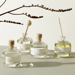 コロンとした丸いフォルムが可愛らしいデフューザー。厳選されたエッセンシャルオイルの自然な香りがお部屋を優しく包み込みます。環境にも配慮しており、スティックにはフィンランドのパイン材を、またボトルにはリサイクル可能なガラス瓶を採用しています。 ミニマムなデザインは、リビングルームやオフィスなど様々なインテリアに馴染みます。